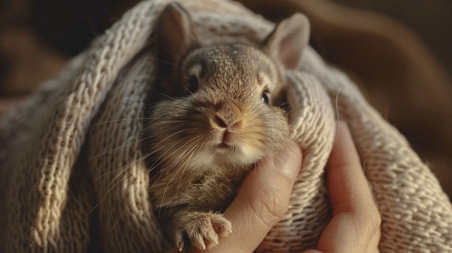 CrĂ©ation visuelle : Pierre GuitĂ© et Mid-Journey - Un levraut fragile, blotti dans la chaleur dâune main : la tendresse du sauvage.